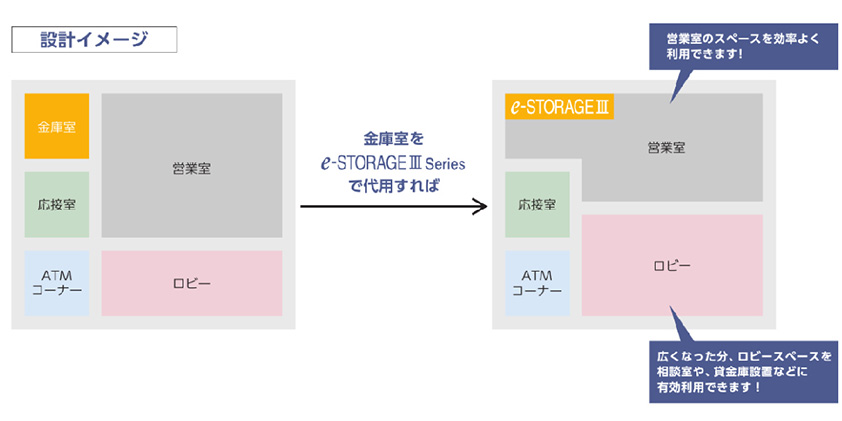 金庫室レス化で、スペース効率を改善