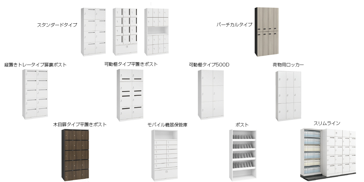 ご要望に合わせて多様な選び方ができるタイプ。 縦型ポストを採用することで1台で最大20人が使える多人数タイプから、6人用で大容量のタイプまで幅広く品ぞろえしています。投入口やコンセントありなしも選択でき、スペースを無駄なく活用できます。