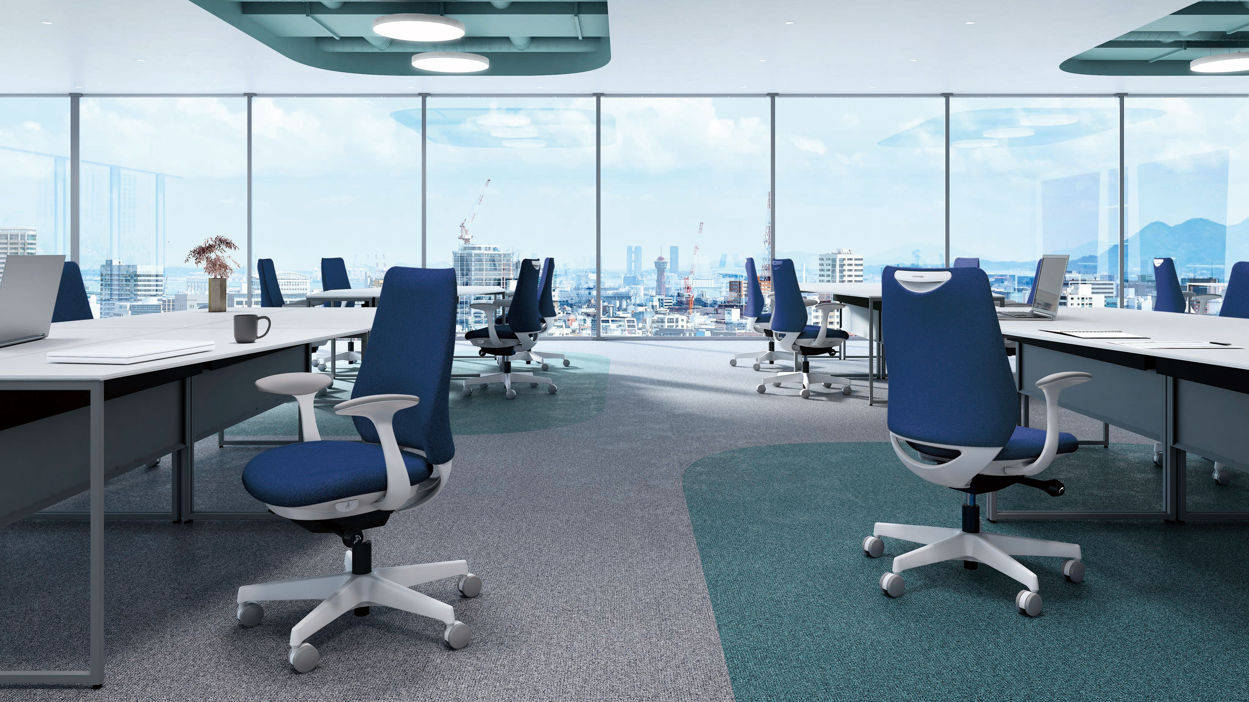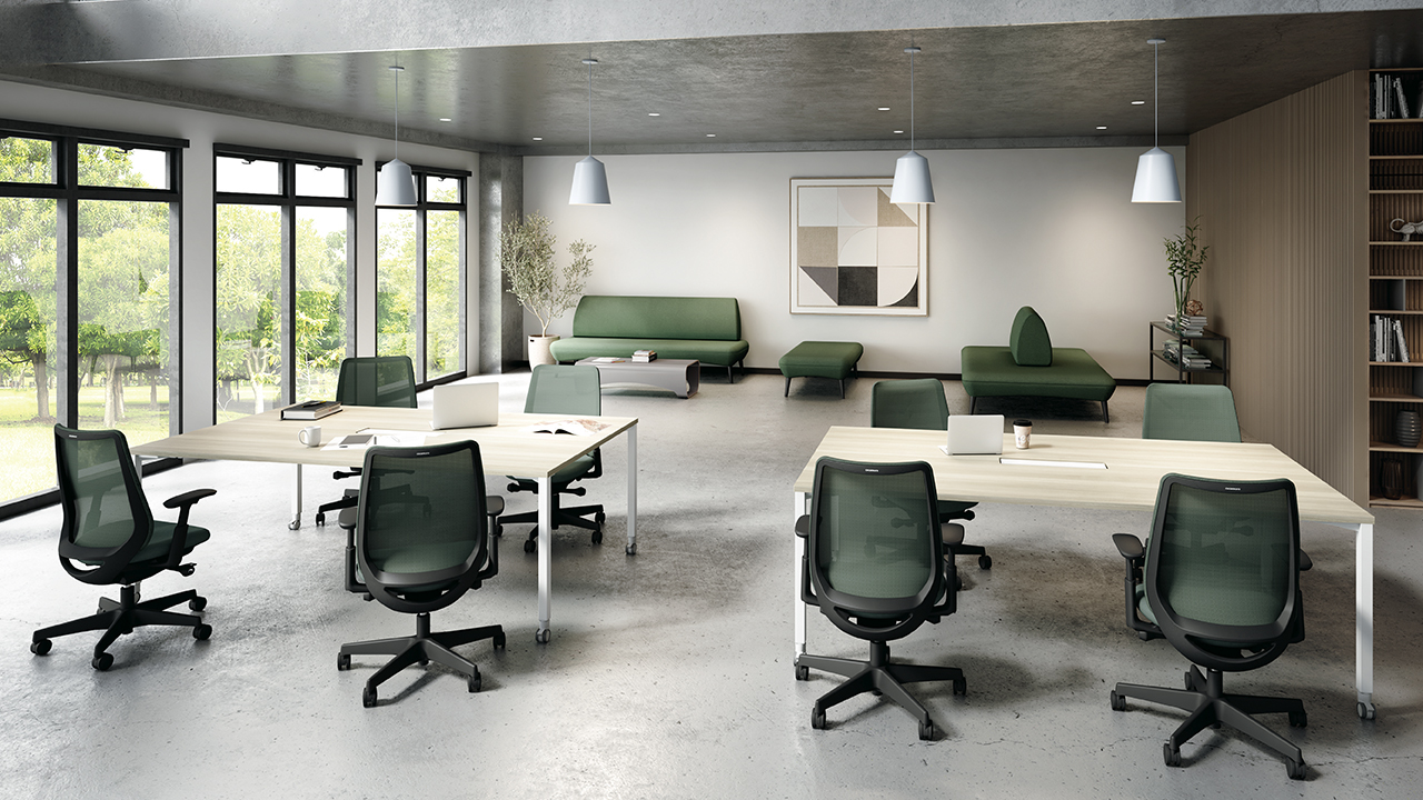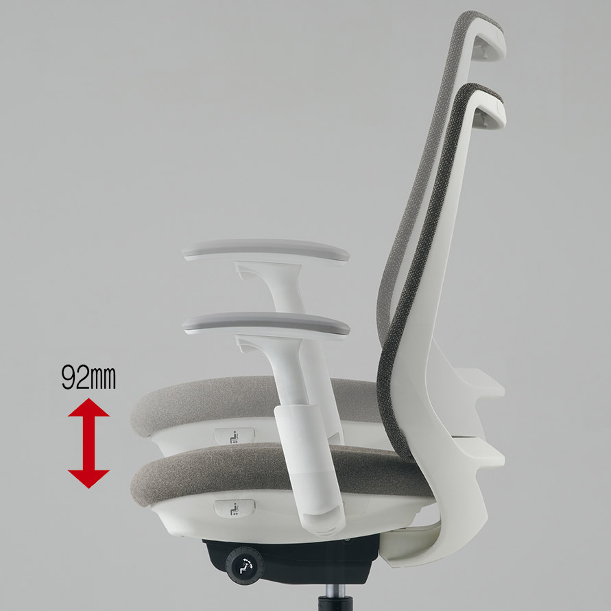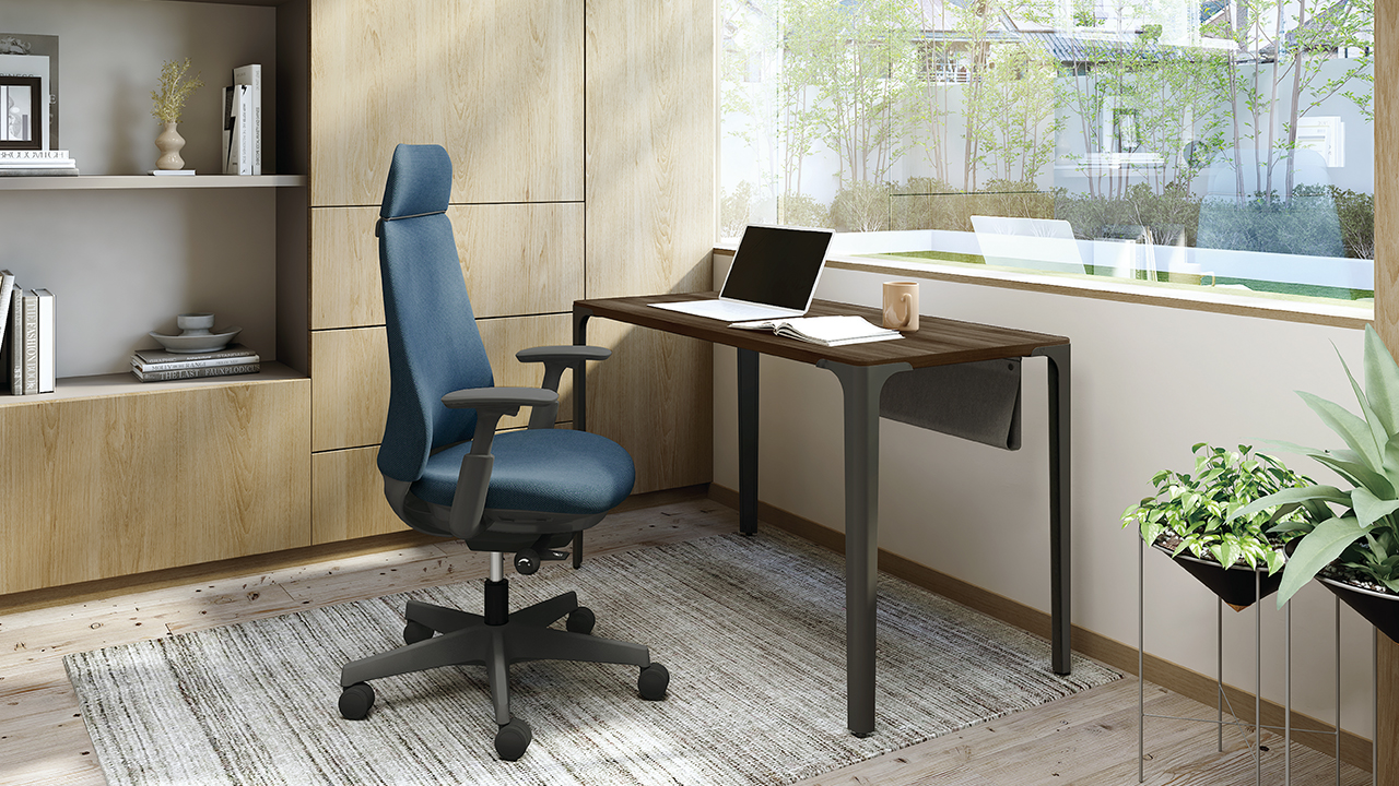 座った瞬間、ソフトなクッションが身体をやさしく受けとめます。さらに、背もたれの内部に採用した樹脂シェルのグリッドが、背中の動きにあわせて変形するため、長時間のハードワークでも快適です。