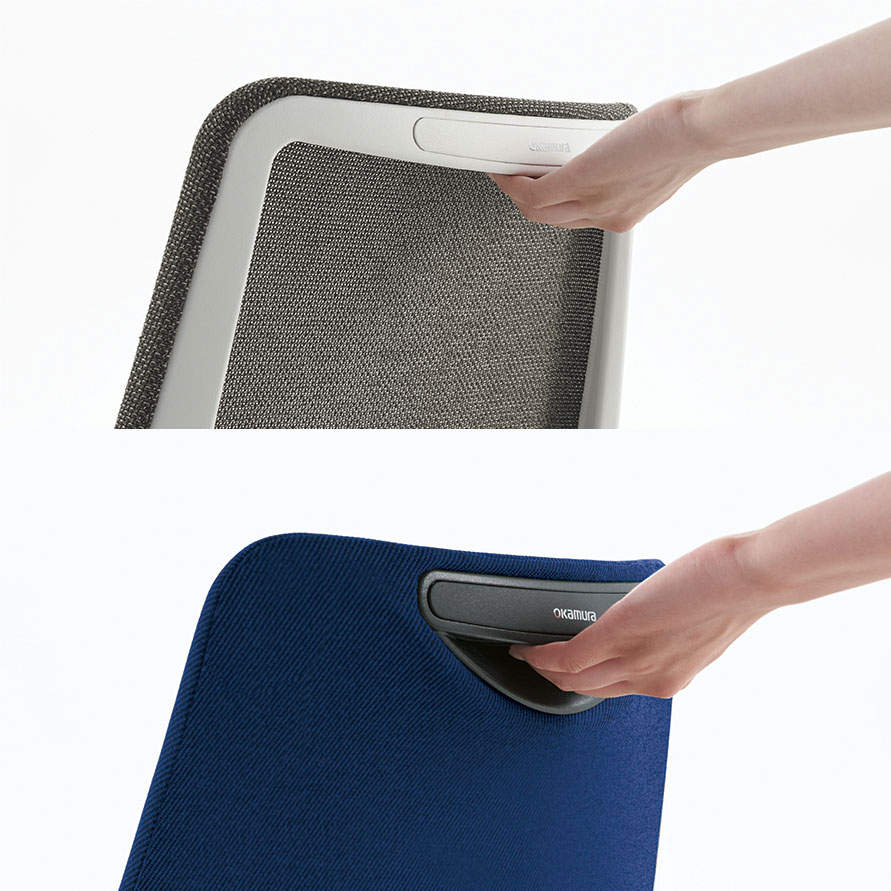 背メッシュタイプは、奥行きのある立体的な形状のフレームに、部位ごとにメッシュのテンションを変えて張ることで腰回りのホールド感をアップ。まるで包み込まれるような座り心地を感じられます。