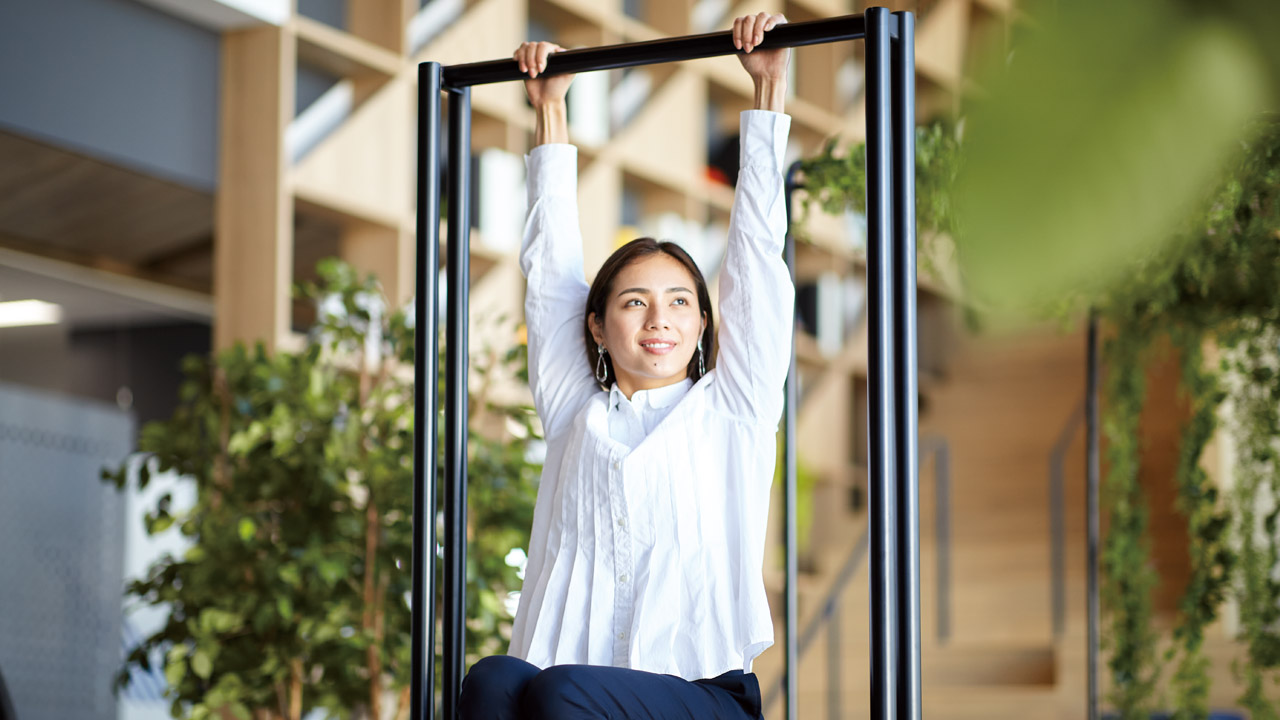 健康経営への取り組みは多岐にわたります。オカムラはオフィスづくりを通じた健康経営への取り組みとして、健康経営オフィスを提案しています。健康経営オフィスとは、健康を保持・増進する7つの行動を誘発することで、働く人の心身の調和と活力の向上を図り、ひとりひとりがパフォーマンスを最大限に発揮できる場のことを言います。従業員の意思や努力だけに任せるのではなく、行動が誘発される環境を提供することが何よりも重要になります。