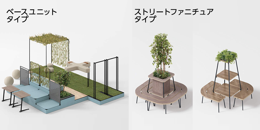 ベンチは220H、450H、670Hの3つの高さで展開しています。220Hのデッキとの組合せで高低差を演出します。パネルはベンチに合わせて高さが変わります。パーゴラはベンチ(デッキ)の高さに関わらず全高が一定です。