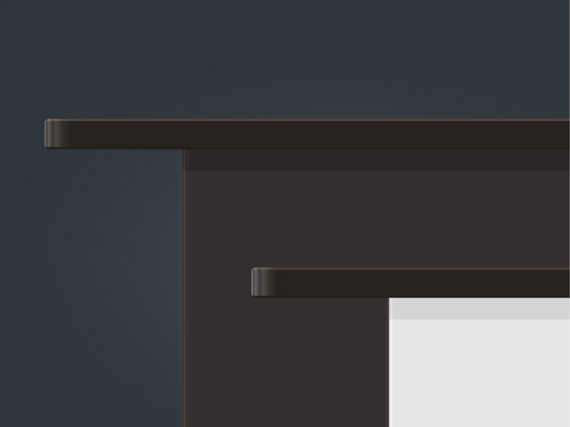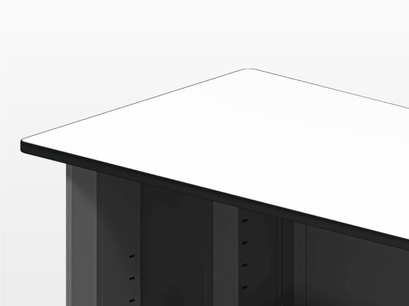 スチール製の天板は15mmの薄さ。スラント形状※の側板とあいまって、スリムでスマートなデザイン。