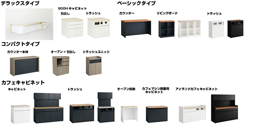 多様なモジュール、多彩なカラーバリエーションをもったカフェキャビネットはLives Post Beam との組み合わせが可能。組み合わせて造作のようなカフェスペースを造ることができます。