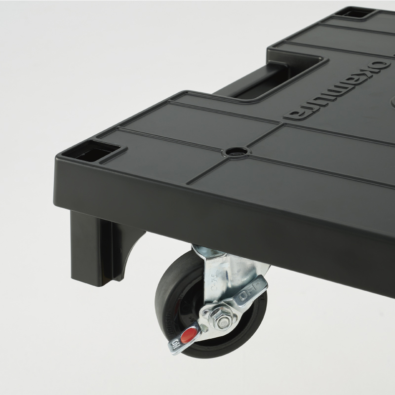 5輪タイプはストッパー付きキャスターで固定できるので、陳列棚としての使用も安心です。