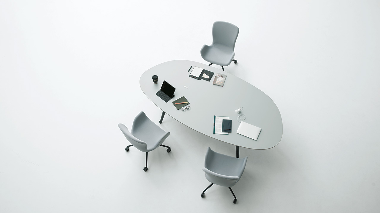 滑らかで、流れるようなデザインを取り入れることで、ワークスペースにも柔らかさや流れ、動きが生まれます。美しいラインと流れるような曲線は人々を惹きつけ、つながりを築き、ワーカーに落ち着きやリラックスをもたらし てくれる存在に。