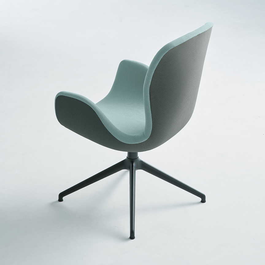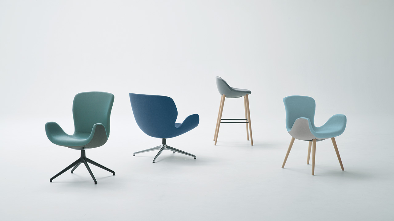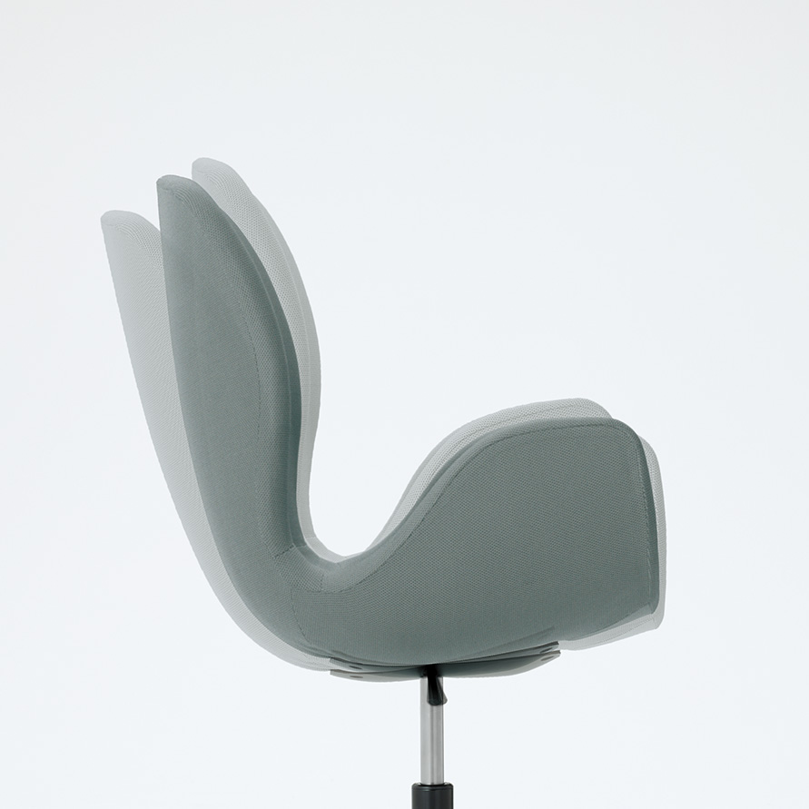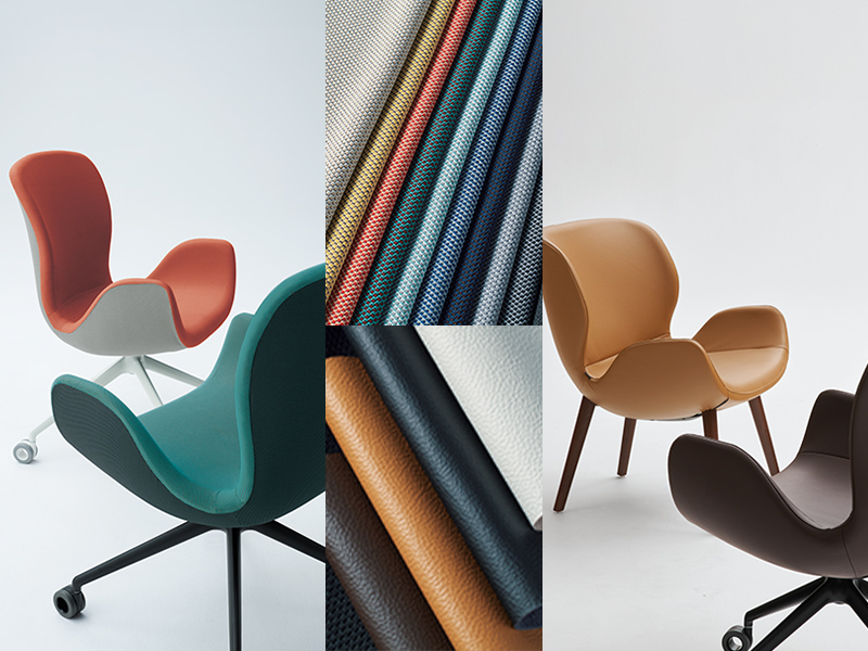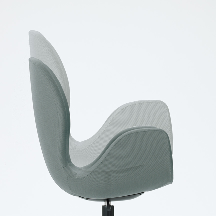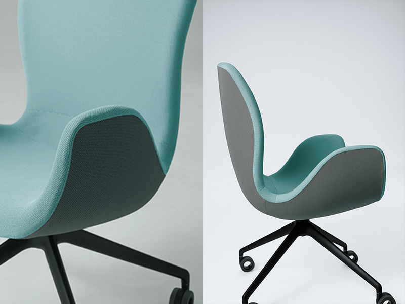Phloxチェアの素材・カラーバリエーションは、様々なインテリアデザインにも合うように慎重に選定されています。ツートンカラーのファブリックは、空間にアクセントを加え、ワーカーの感性を刺激します。内側は厳選された8 色から、外側はグレーまたはダークグレーから選ぶことができます。