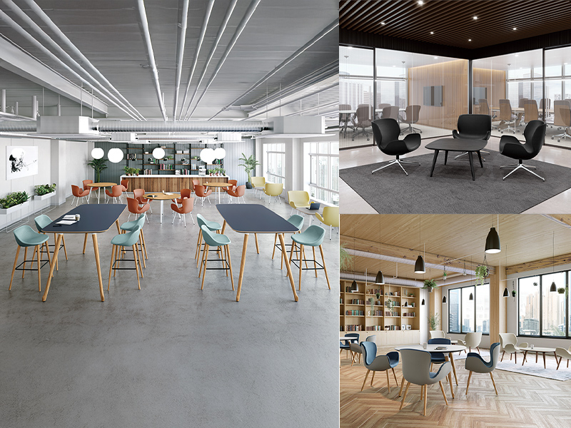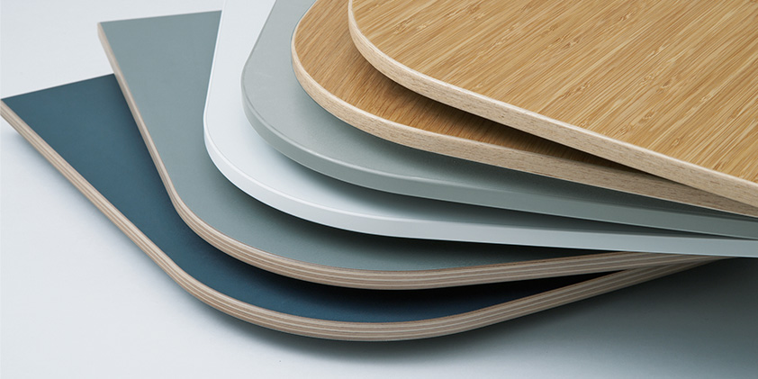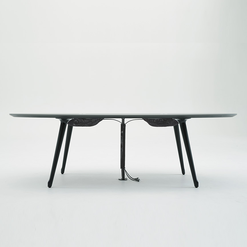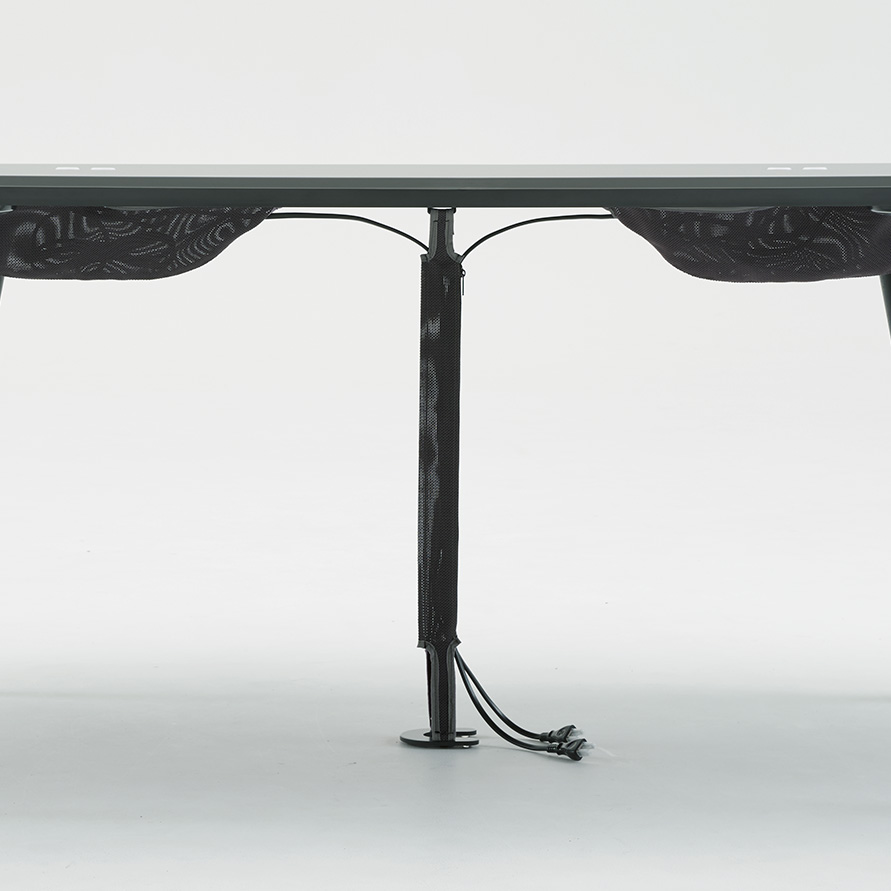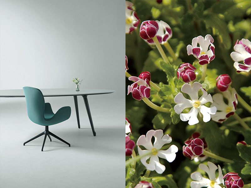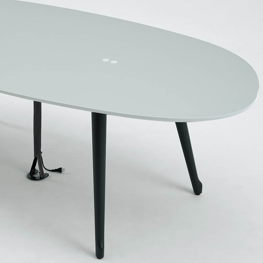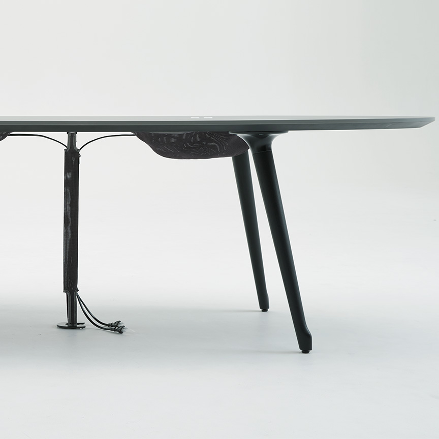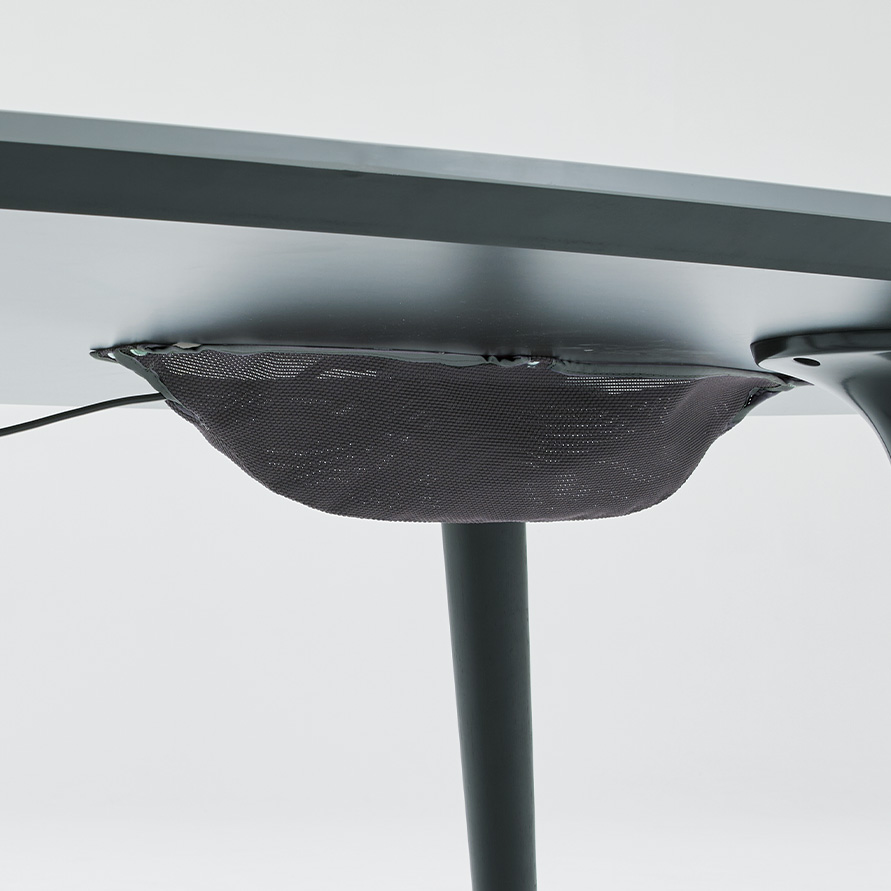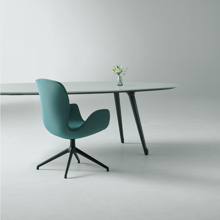 Phloxテーブルの天板エッジは、表面材に合わせて厳選された縁材とナイフエッジの組合せで、細部までデザインされています。また、チェアと同様に質感・色の異なる表面素材を豊富に品揃えしており、様々な企業の内装デザインにも合わせられるようになっています。