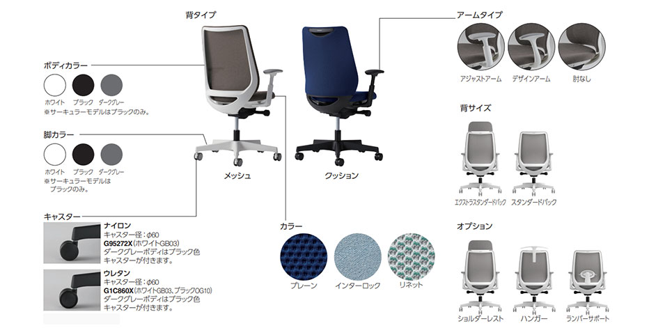 背メッシュタイプは、奥行きのある立体的な形状のフレームに、部位ごとにメッシュのテンションを変えて張ることで腰回りのホールド感をアップ。まるで包み込まれるような座り心地を感じられます。