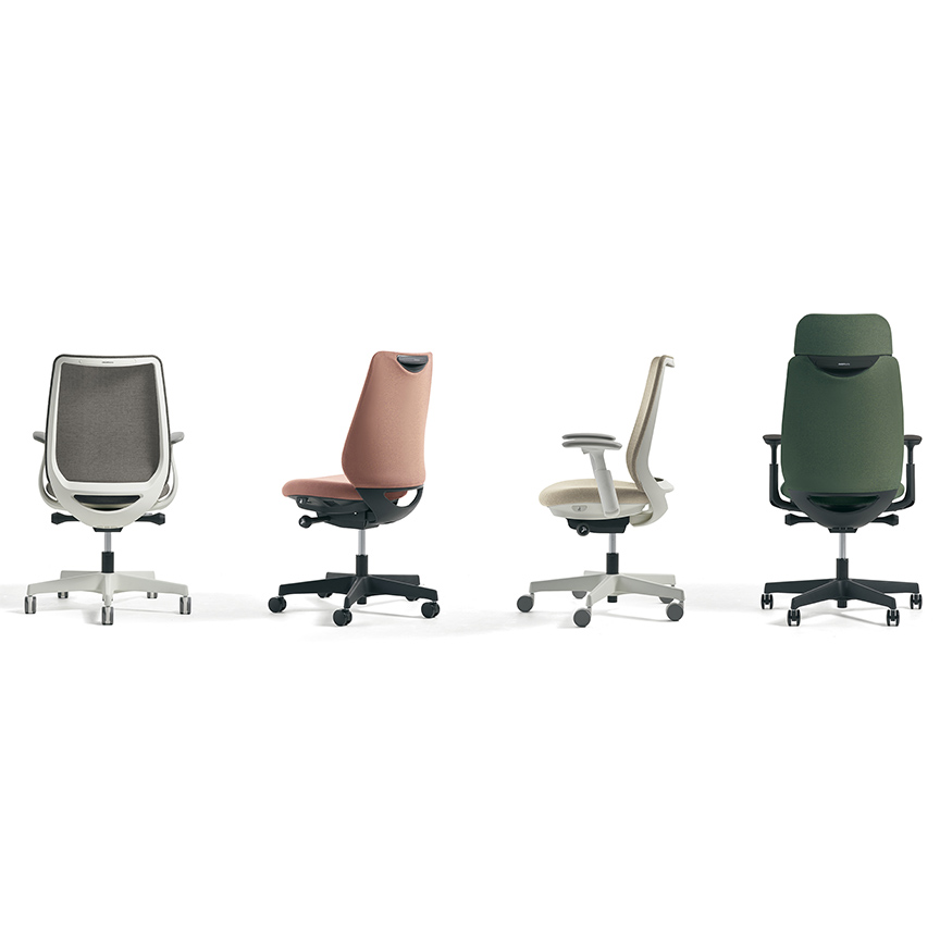 座った瞬間、ソフトなクッションが身体をやさしく受けとめます。さらに、背もたれの内部に採用した樹脂シェルのグリッドが、背中の動きにあわせて変形するため、長時間のハードワークでも快適です。