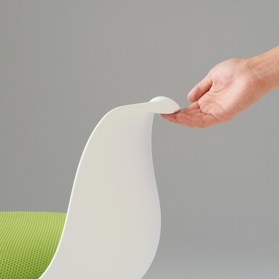 チェアタイプ・ライトグレージュ色の背座シェルには間伐材などを用いた木粉配合の樹脂シェルを使用。