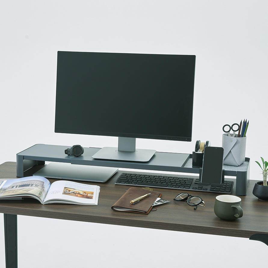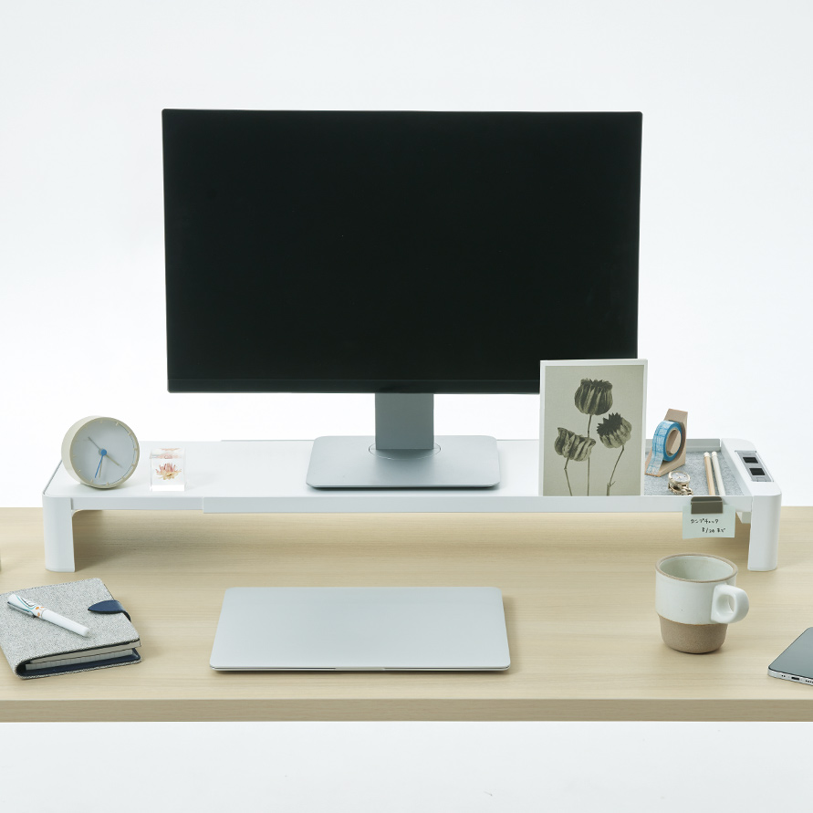サブ天板として使えるツールラック。幅調整可能でどんなサイズのデスクにも。