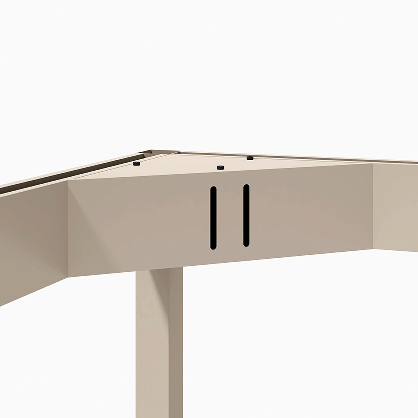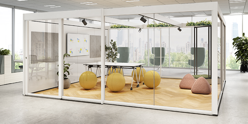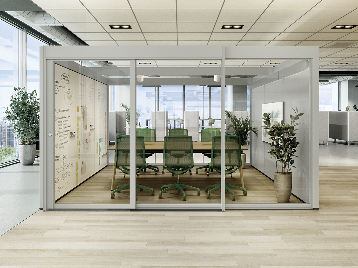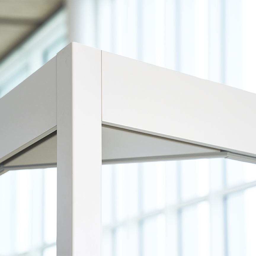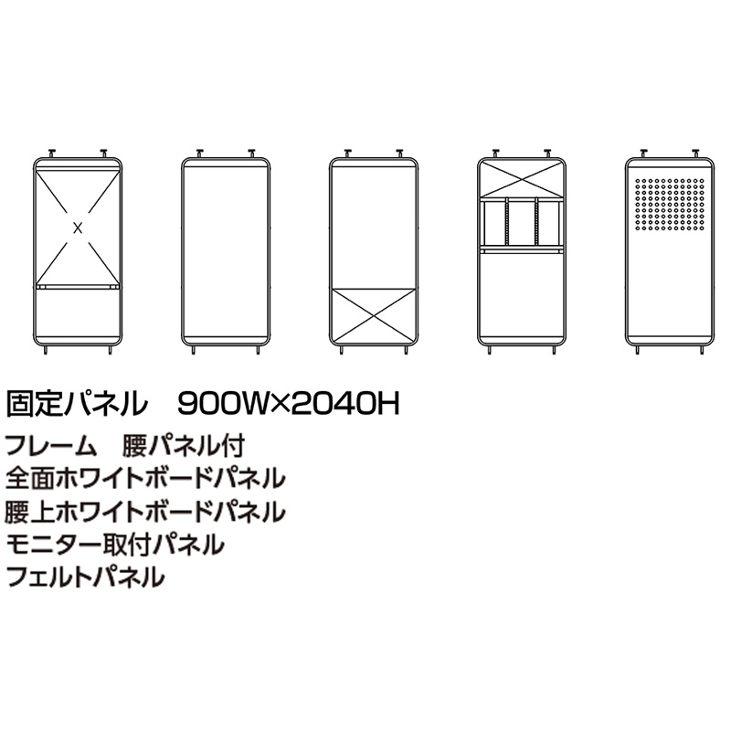 シンプルを極めたその美しい佇まいは、様々な空間にマッチします。フレームカラーは、空間に遊び心を与えるビビットなものから、落ち着いたものまで、目的や用途に合わせて設えることができます。パネルは移動パネルと固定パネルの2タイプ。それぞれ打合せに欠かせないホワイトボードパネルやモニター(OCバッテリー付)パネル、周囲の視線を遮るフェルトパネルやカーテン等をご用意しております。