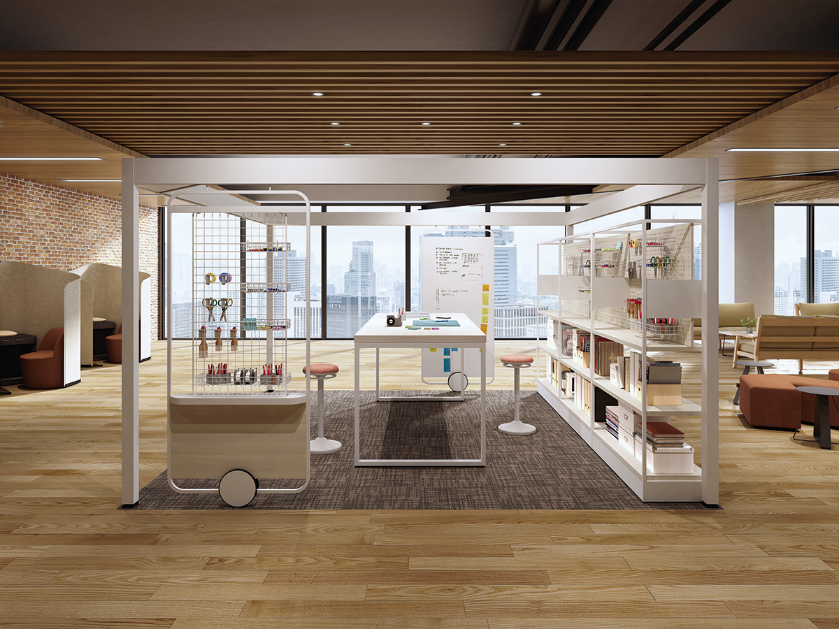 プレゼンの準備や試作検討など、チ ームのメンバーで集まって作業できるスペースを確保することも重要です。話し合いながら共同で作業を進められ、より良いものを作り上げることが出来ます。工具や備品などの共有保管の場としても最適です。