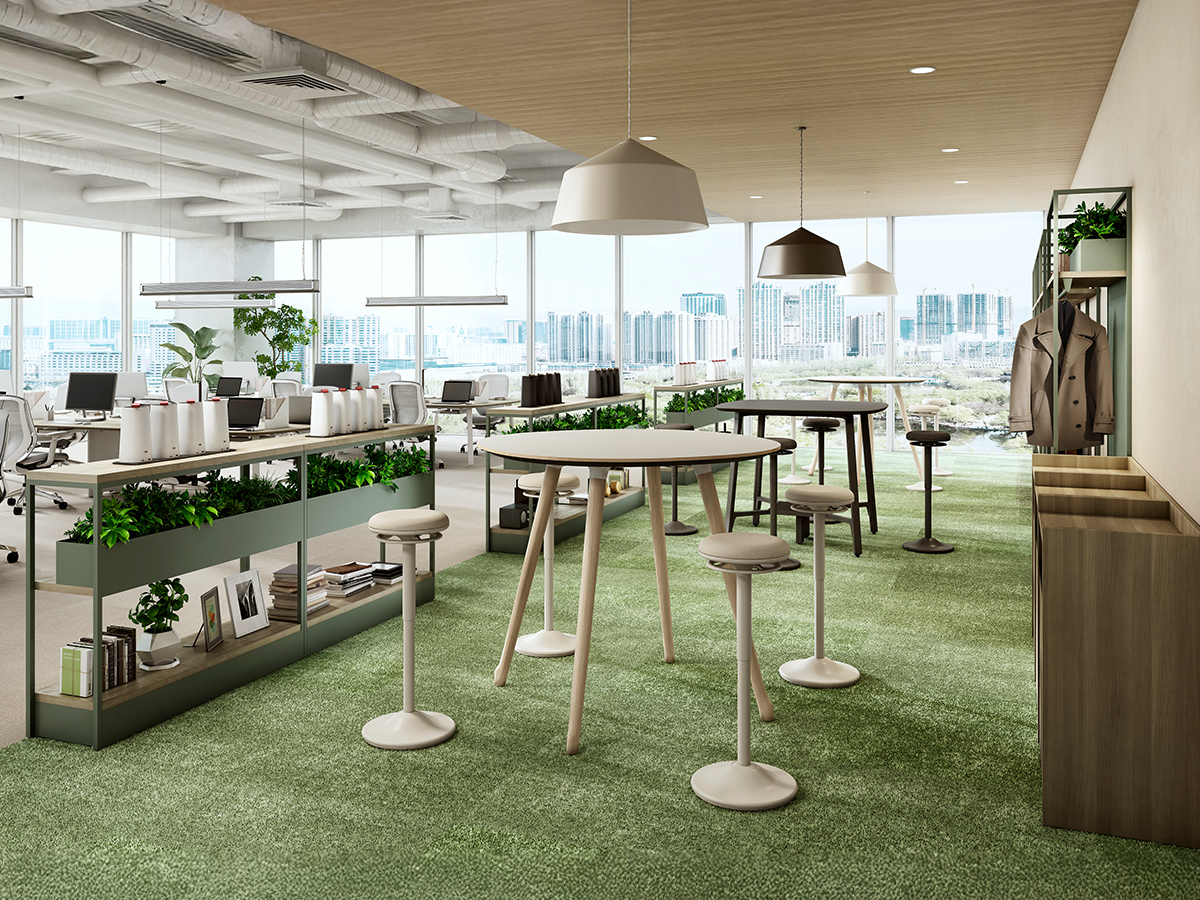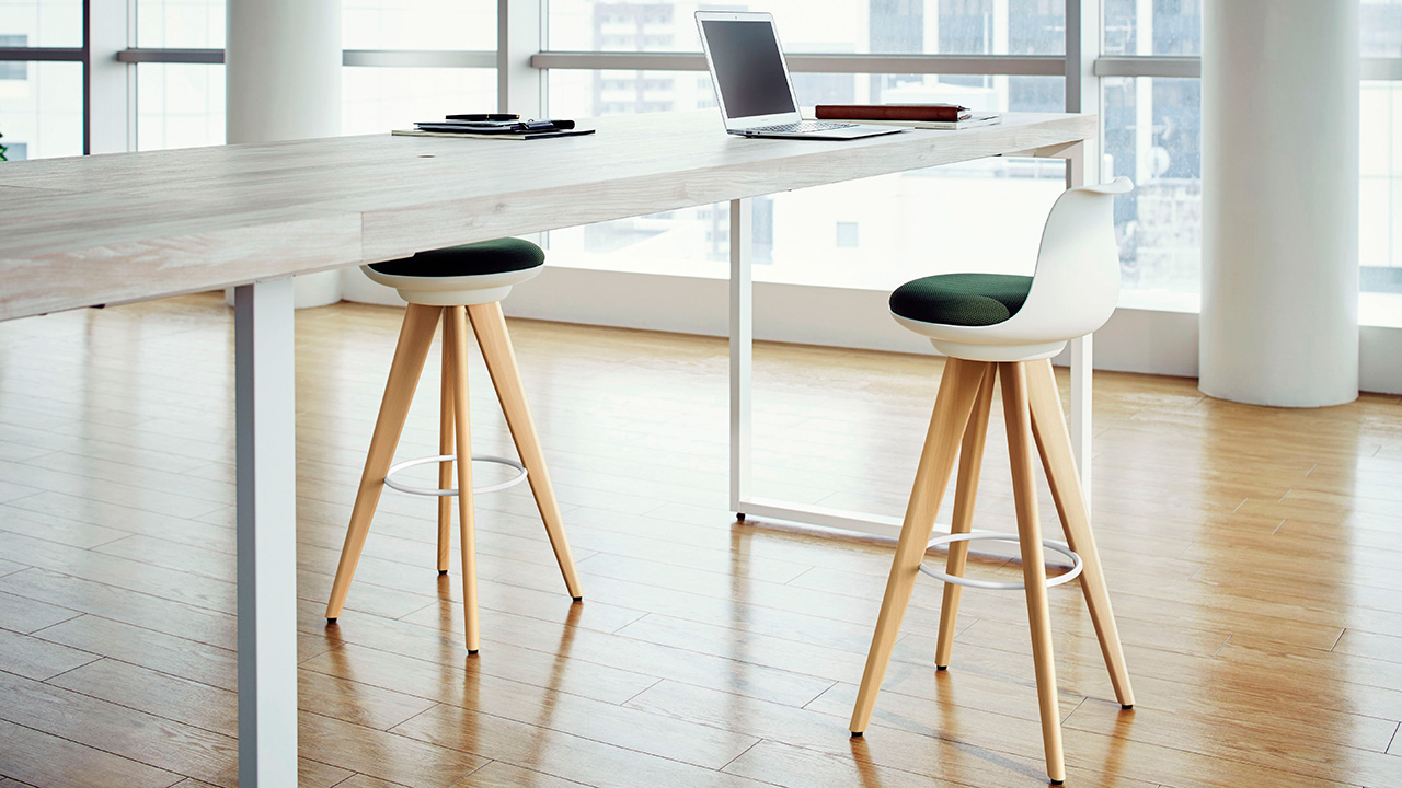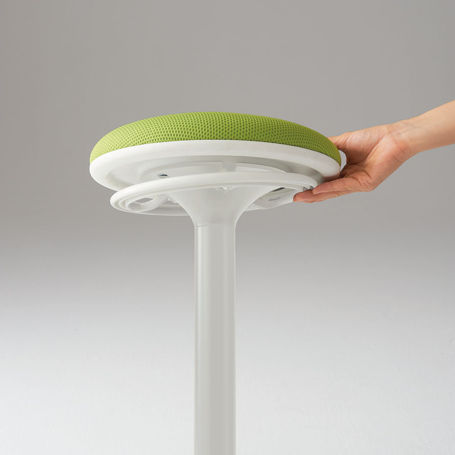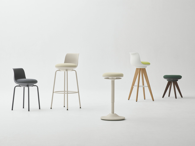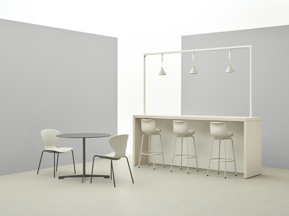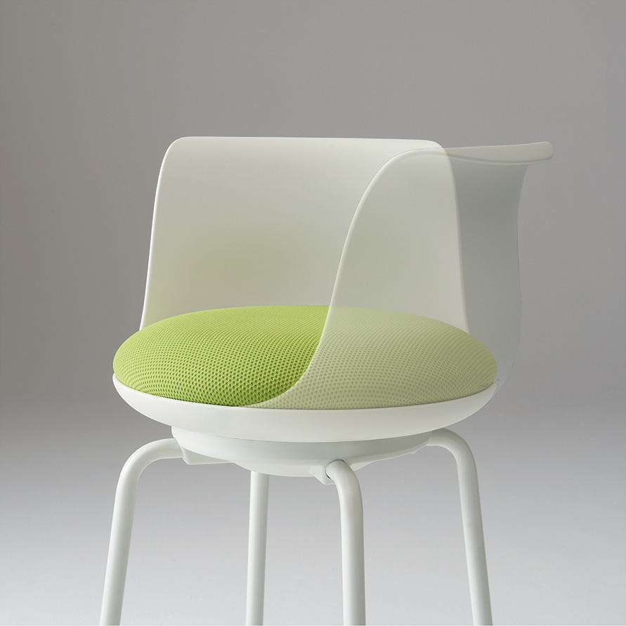 チェアタイプ・ライトグレージュ色の背座シェルには間伐材などを用いた木粉配合の樹脂シェルを使用。