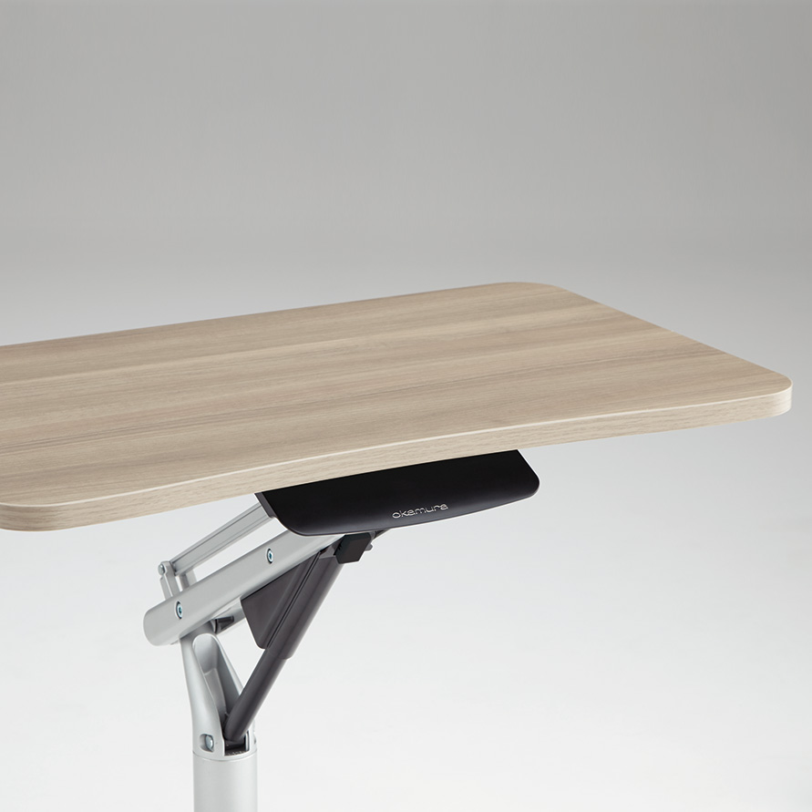 天板の裏側に、高さ調整用スイッチレバーがあります。天板を持ちながらレバ ーを操作できるので、片手で簡単に高さ調整が可能です。操作感が良く、小刻みに高さ調整ができます。