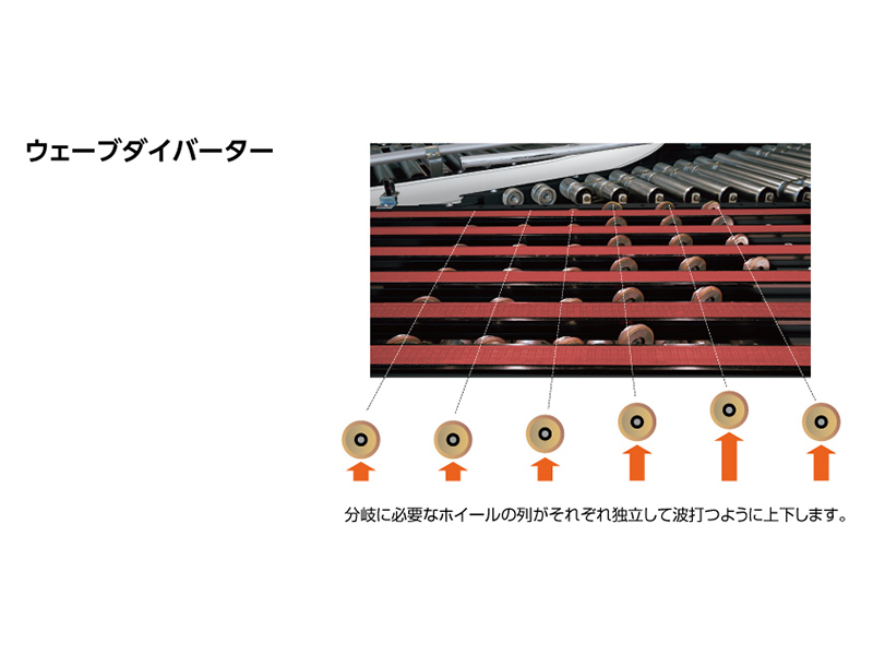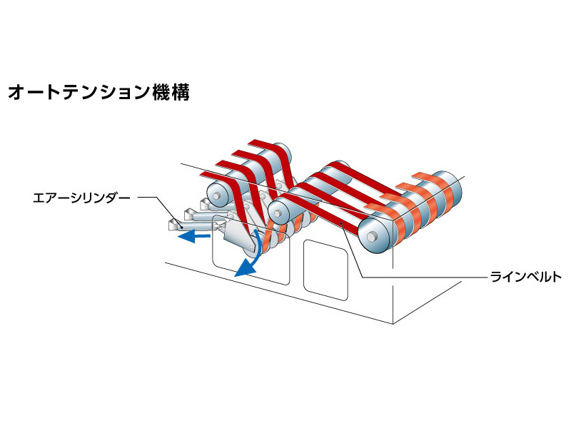 エアーシリンダーによりベルト毎に一定の張力を与えるオートテンション機構を採用し、正確かつ安定した仕分けが可能。