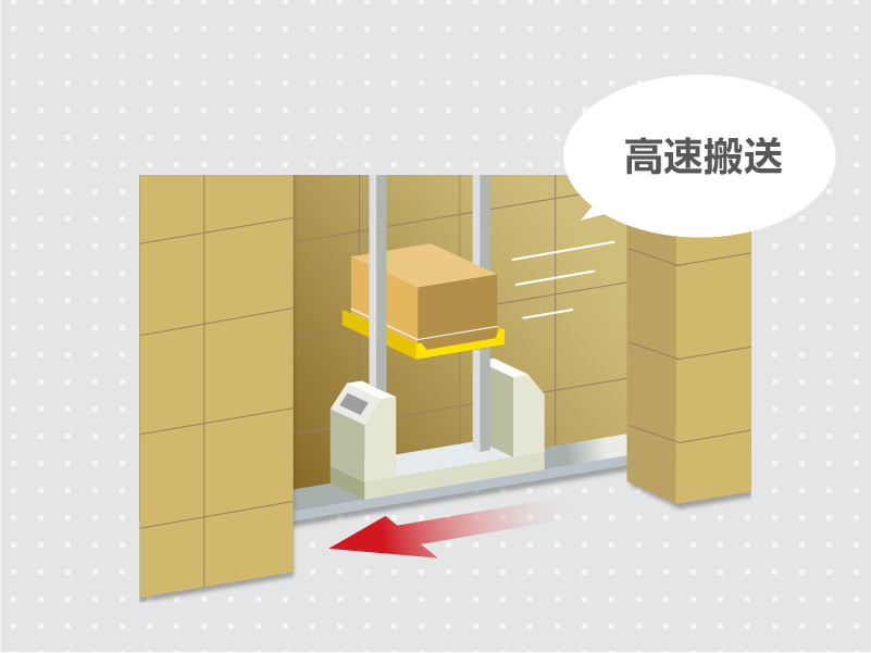 30m までの高層化が可能で上部空間を有効活用できます。フォークリフト等の旋回スペースが不要なため、パレットラック保管と比較してスペース効率が上がります。