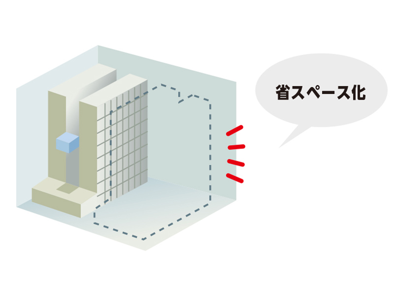 ラック本体の構造を省スペース設計としました。細部に至るまで無駄なスペースを省き、強度を保ちながら、スリムな構造体となっています。