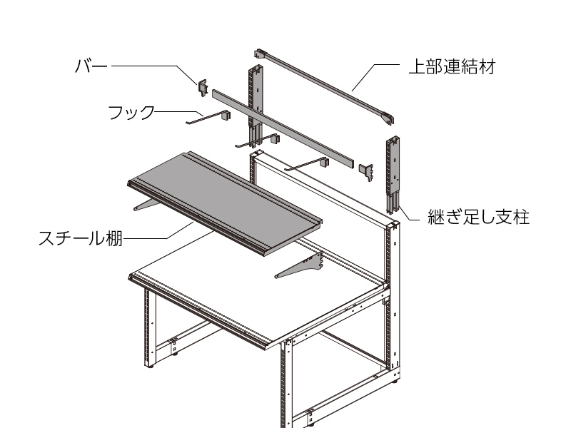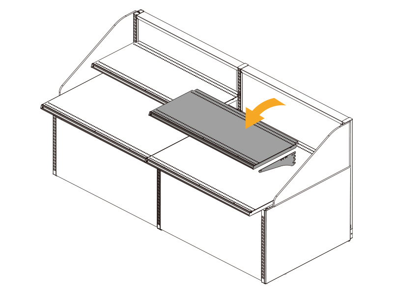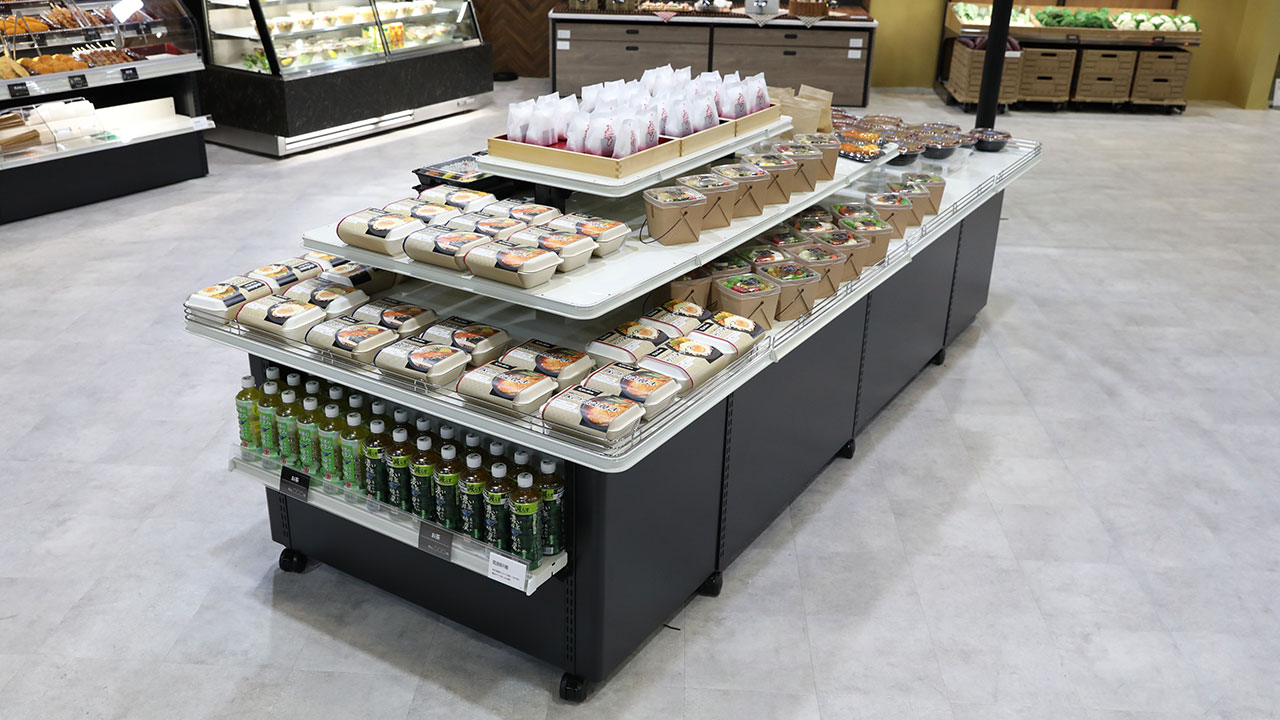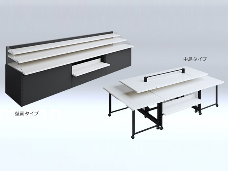 ゴンドラと共通のアタッチメントを取り付け可能なので、棚板やフックなど自在に組み合わせられ、関連商品陳列の幅が広がります。商品陳列の選択肢は無限大です。