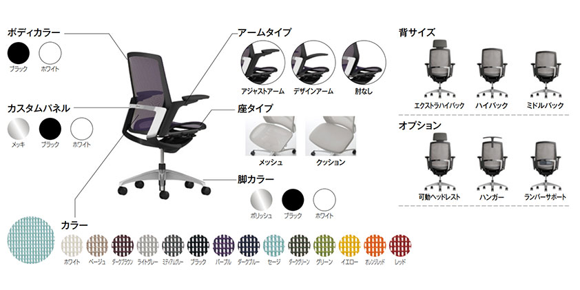 4方向に自由に動く革新的なアジャストアームをはじめ、多様な作業姿勢と体格にフィットする機能を搭載。自然な姿勢で簡単に調節できるスマートアジャストメントを実現。
