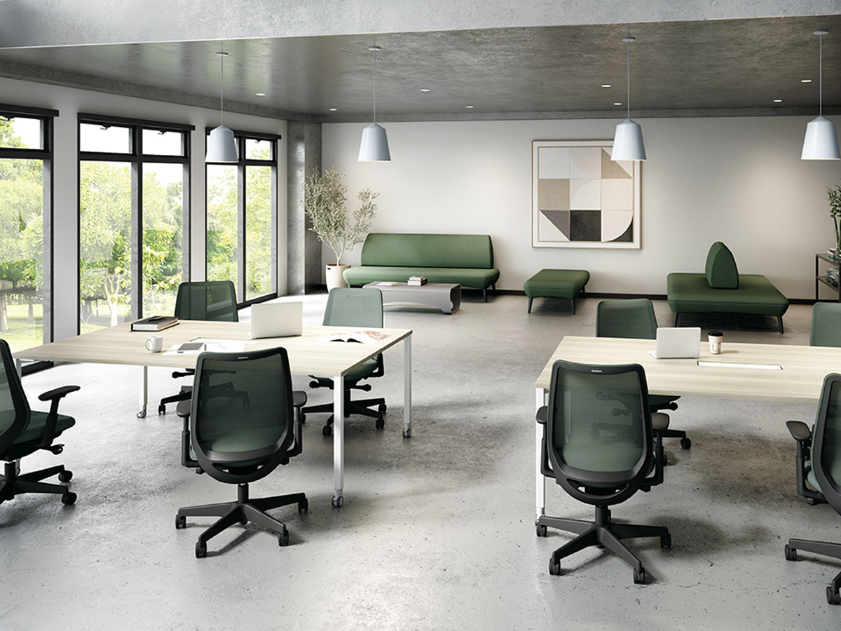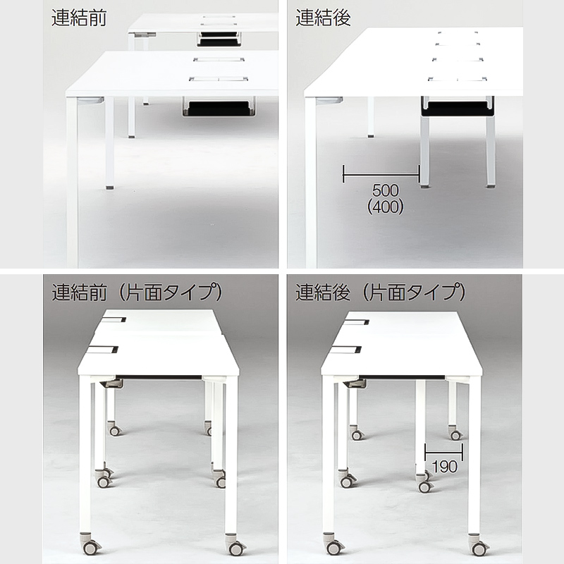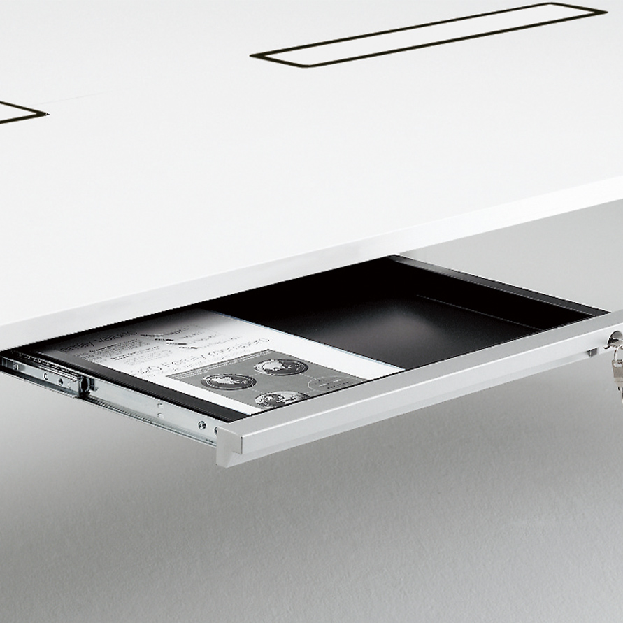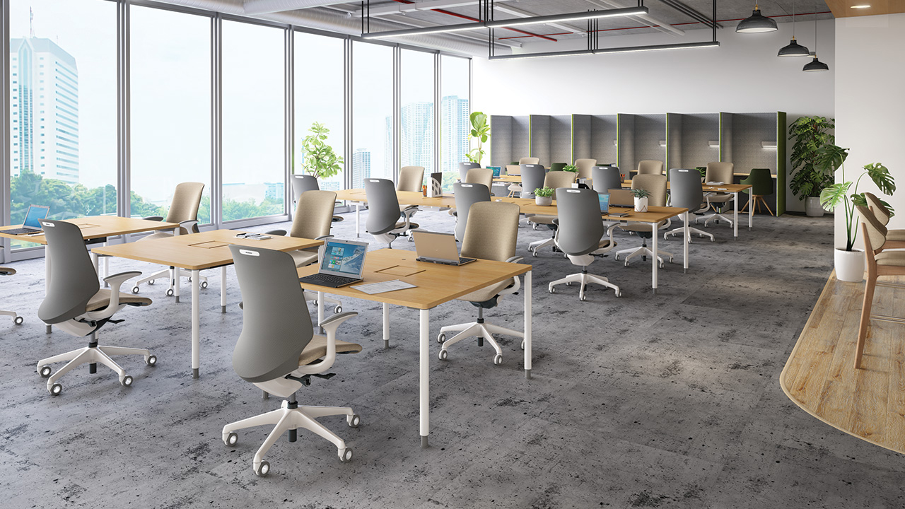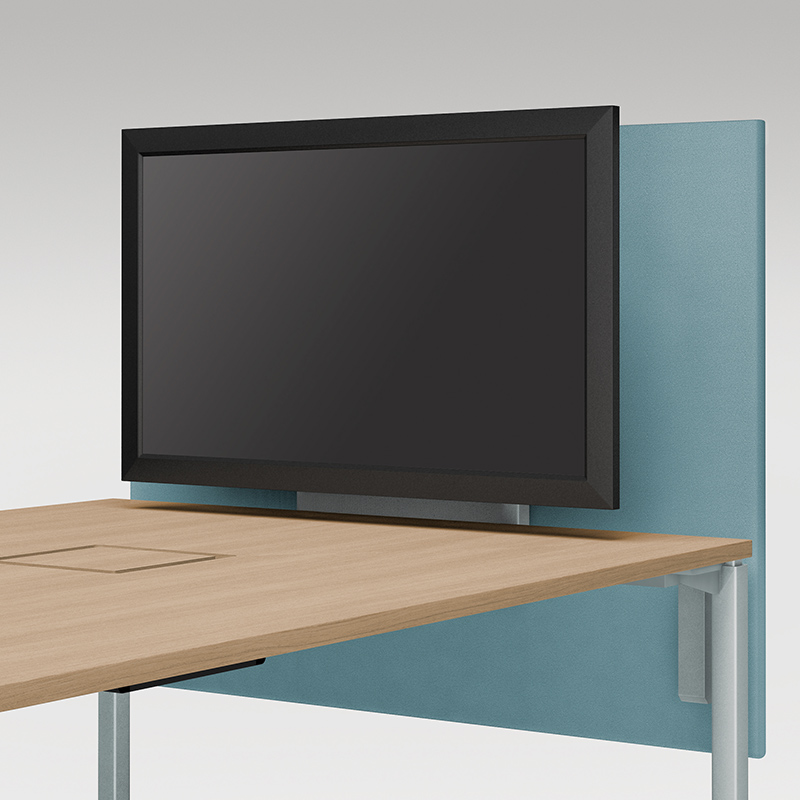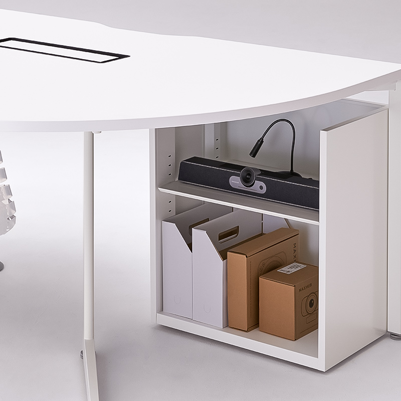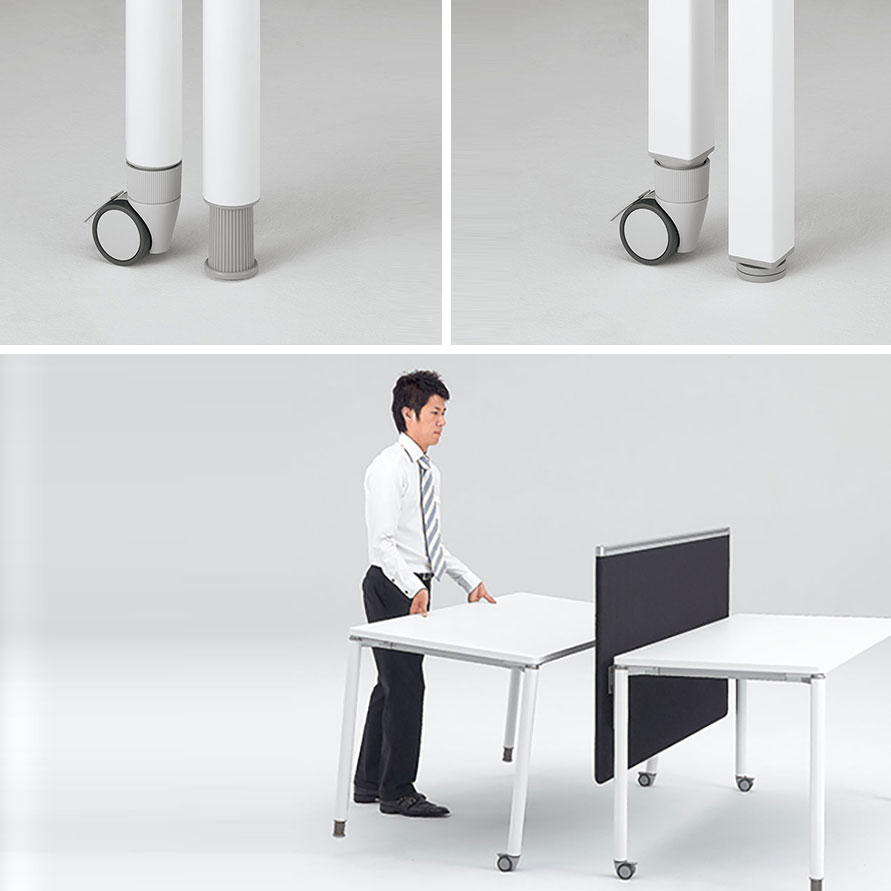 半円形状なので、対面でもオンラインでも、参加者全員の顔を見渡しやすく、ハイブリッド会議におすすめです。1on1テーブルとしてもお使いいただけます。