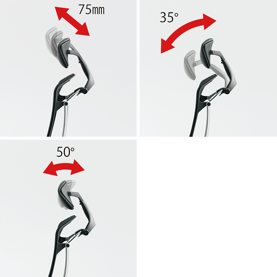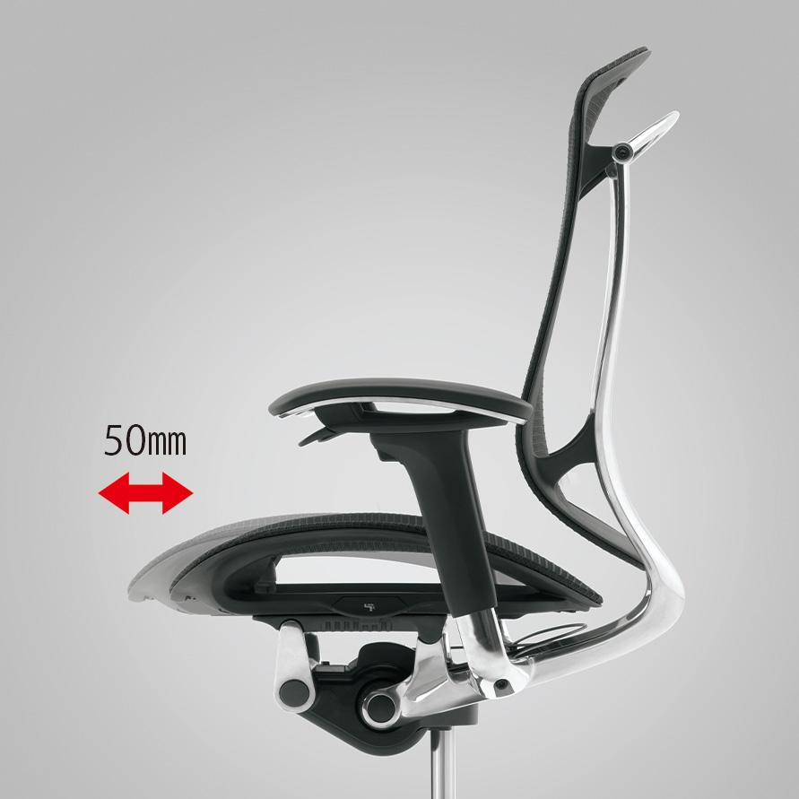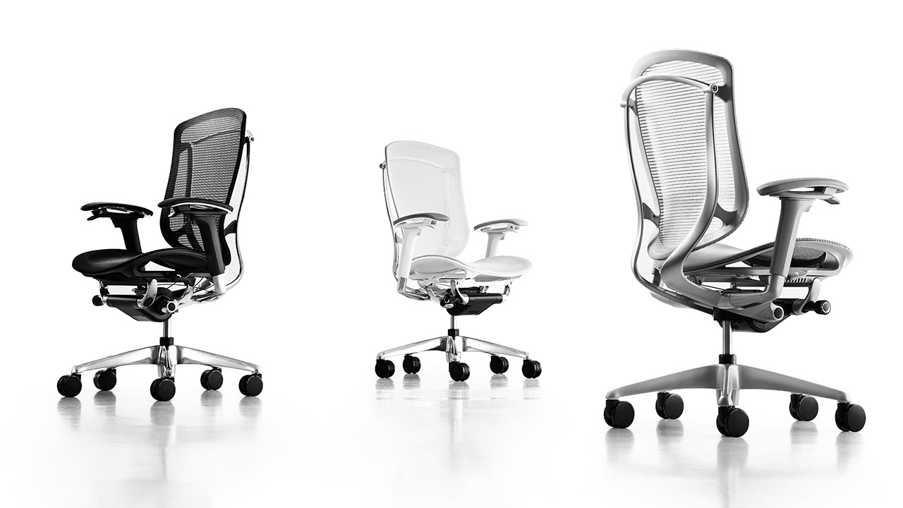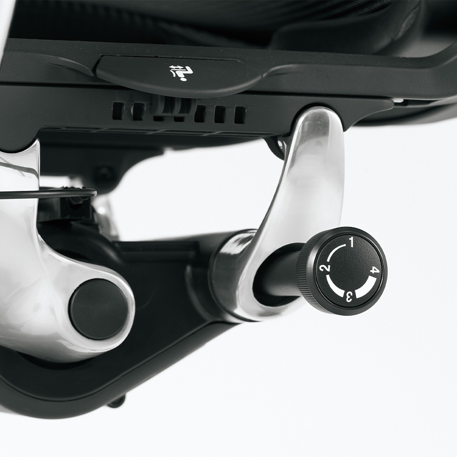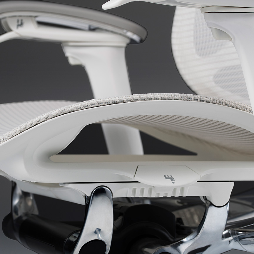 背フレームは薄さをより追求し、座フレームは柔軟性が向上しました。また、クッションタイプには異硬度クッションを採用し、より上質な座り心地を提供します。様々な体格や姿勢に対応するため、アームは自由自在に調節できます。また、リクライニングなどの姿勢変化も肘先のレバーでスマートに操作することができます。