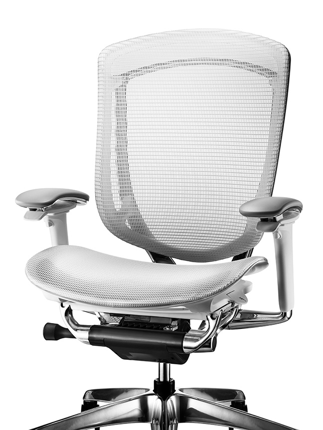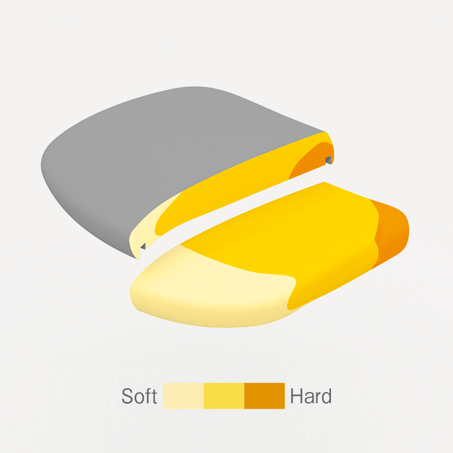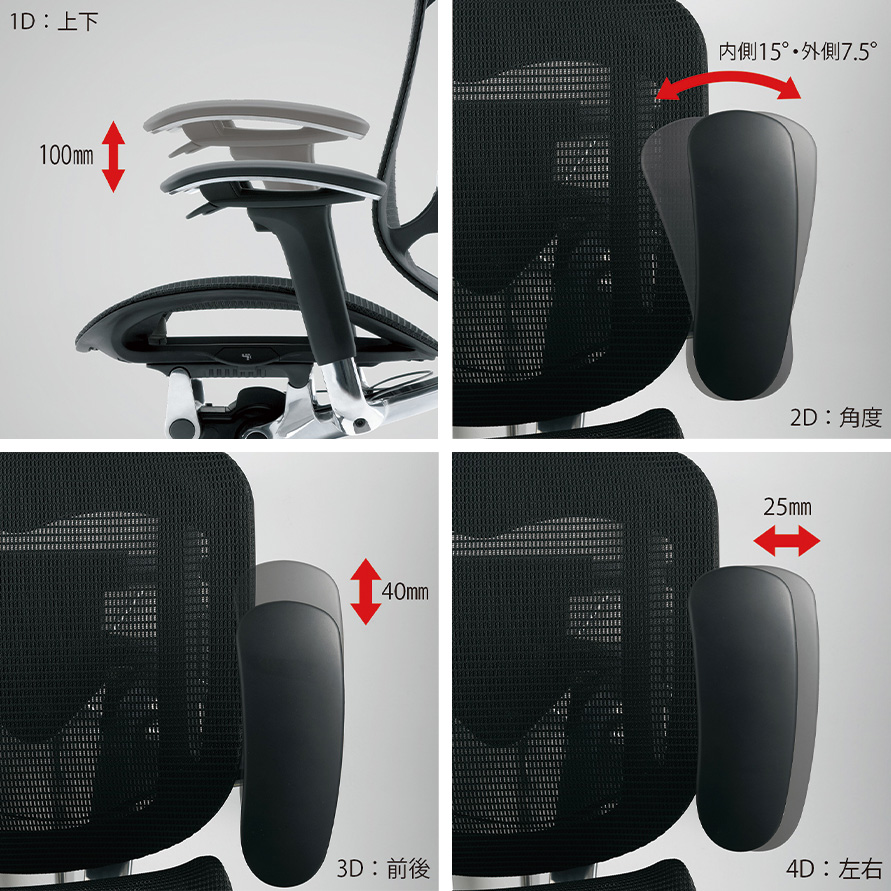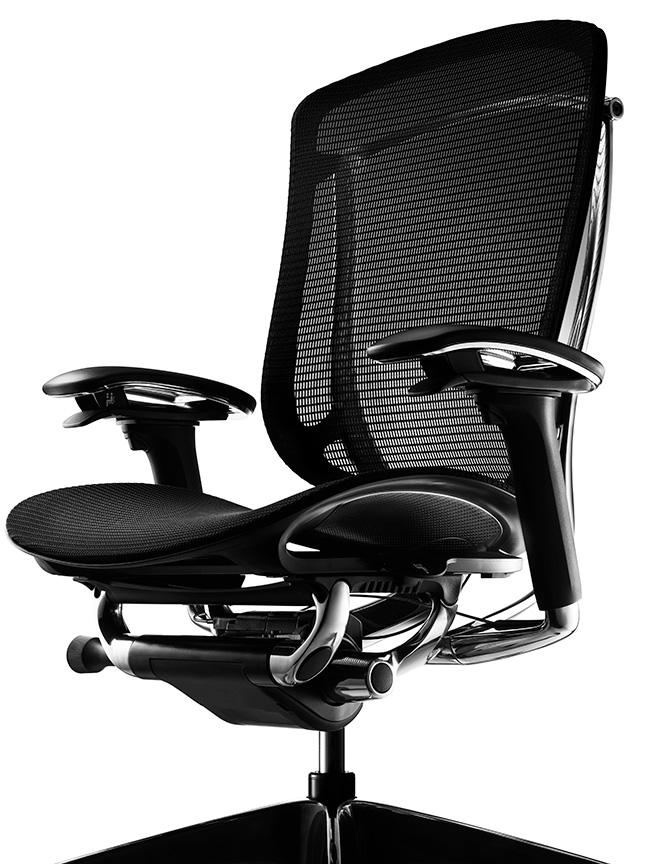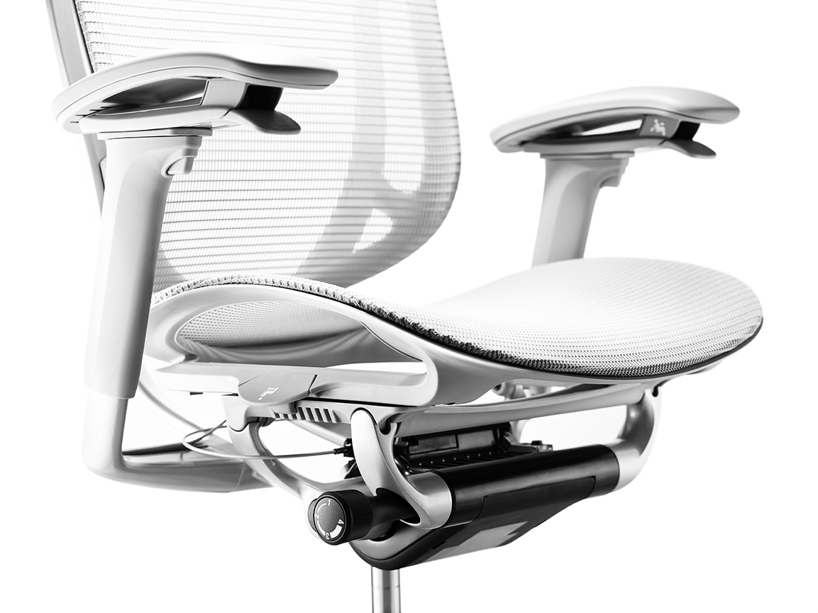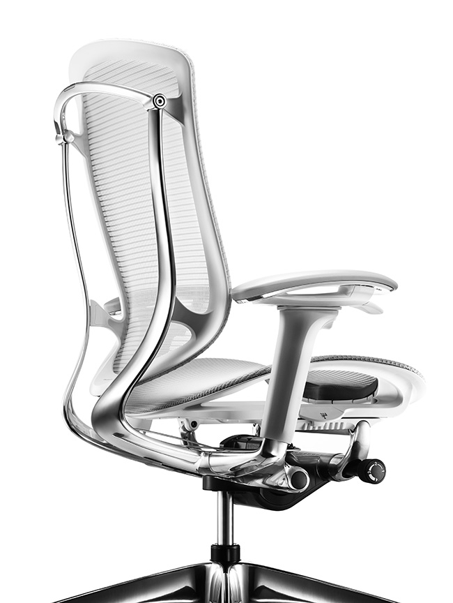 背フレームは薄さをより追求し、座フレームは柔軟性が向上しました。また、クッションタイプには異硬度クッションを採用し、より上質な座り心地を提供します。様々な体格や姿勢に対応するため、アームは自由自在に調節できます。また、リクライニングなどの姿勢変化も肘先のレバーでスマートに操作することができます。