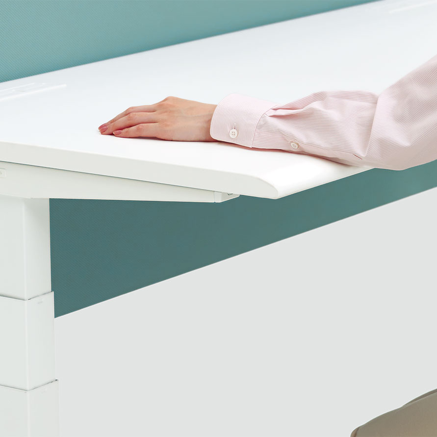 立った際に寄りかかれるよう、天板のトップエッジはなめらかなスロープ形状。