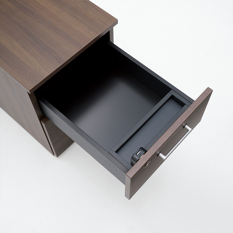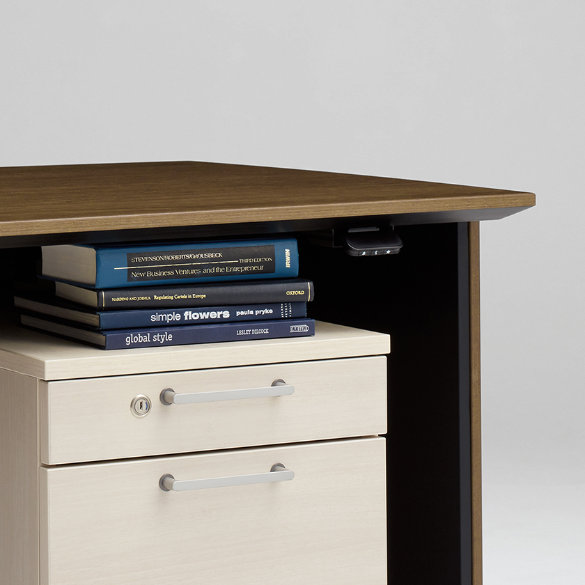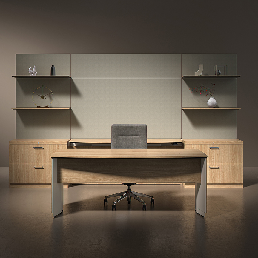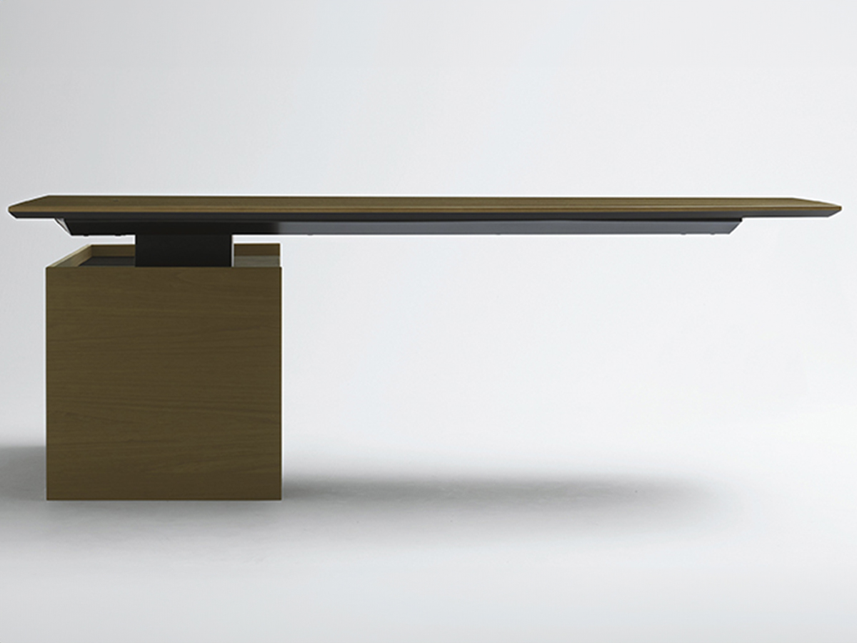 象徴的なデザインのカンチレバーデスクをはじめ、すべてのラインナップがシャープで抜け感のあるデザインです。また、デスクはすべて電動昇降機能を備えており、機能的に健康的に働くことができます。