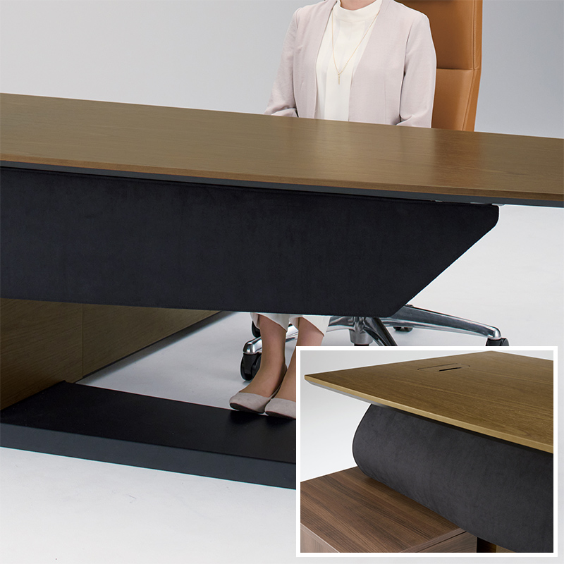 電動昇降デスクには、シリーズ共通の抜け感のあるデザインを最も体現するデザインのカンチレバータイプから、スタンダードに使いやすいパネル脚タイプ、脚抜けの良いL脚タイプまで、幅広くご用意。