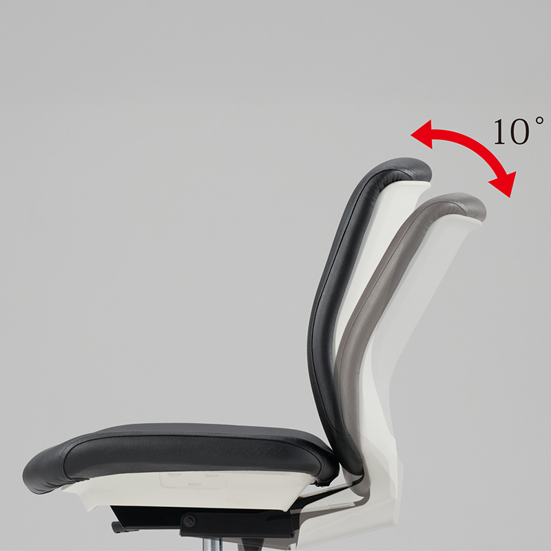 背もたれによりかかると、体の動きに追従し、背が後方に倒れます(ロッキング:10°)。