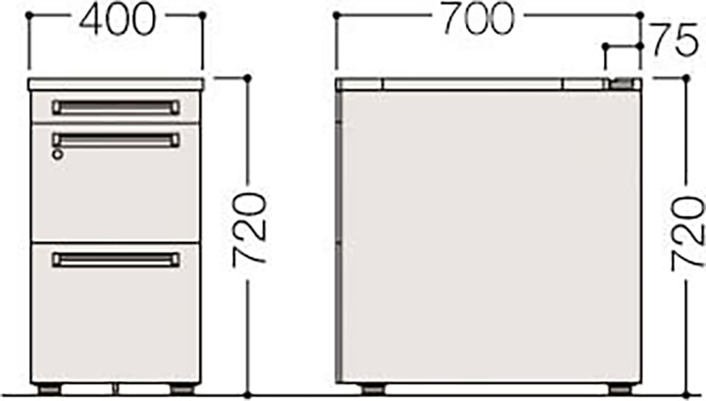 - 幅(W):400mm、奥行き(D):700mm、高さ(H):721mm