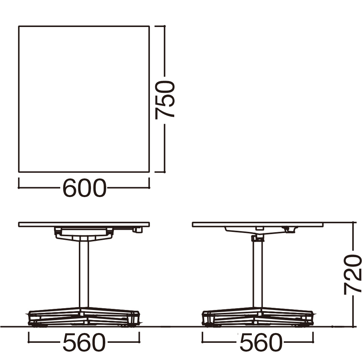 - 幅(W):600mm、奥行き(D):750mm、高さ(H):720mm