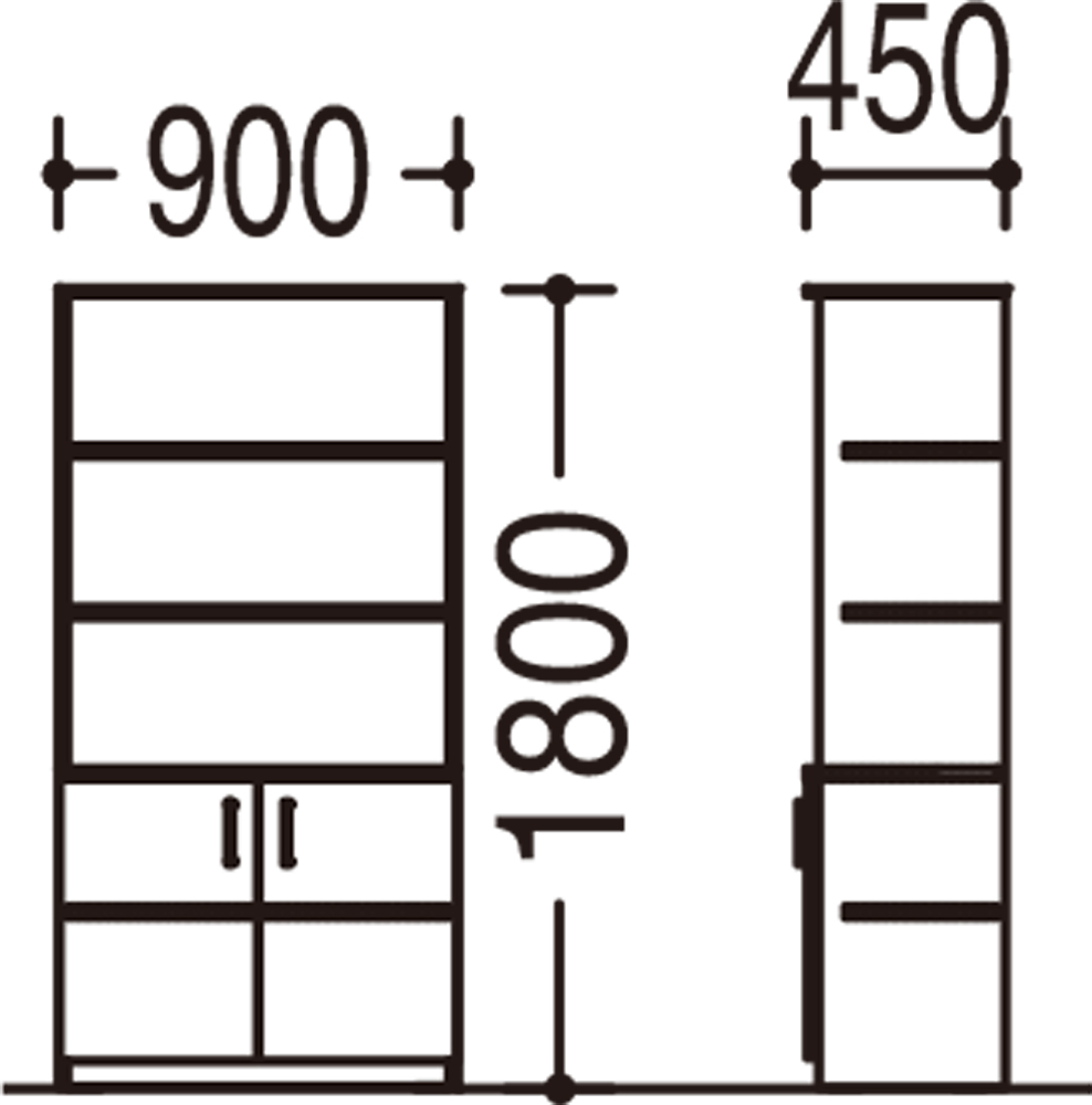 - 幅(W):900mm、奥行き(D):450mm、高さ(H):1,800mm